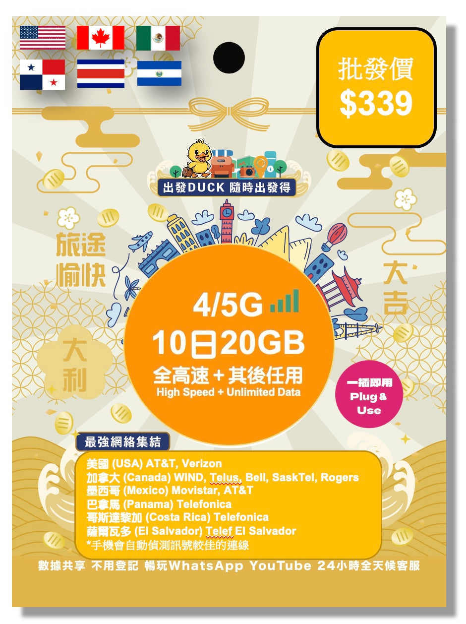 「出發DUCK」北美10日20GB 全高速旅遊數據卡
