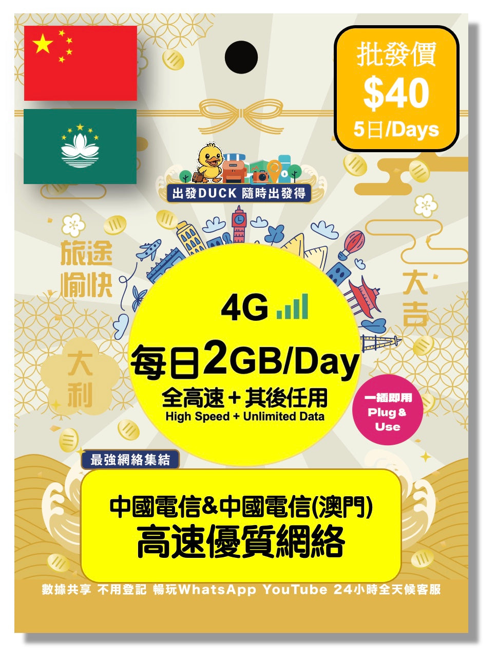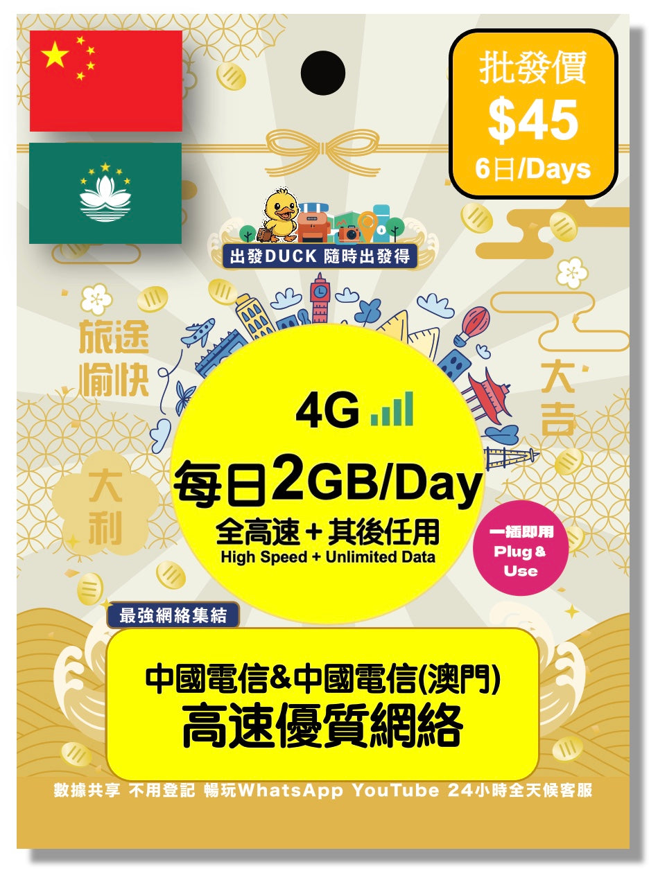 •請於到達目的地後插卡,插卡當天即算使用第一天,非24小時制計算,請注意流量重置時間